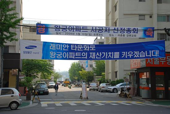 2006년 4월 재건축조합설립을 위한 추진위원회가 설립·승인된 왕궁아파트는 같은 해 8월 재건축 추진 여부를 판가름하는 정밀안전진단 결과 D등급을 받았다. 이후 조합설립을 위한 동의서 징구 등 준비과정을 거쳐 작년 9월 창립총회를 개최했다. 지난 12월 9일 조합설립인가를 받았다.